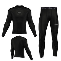 3S SPORTS Men's Thermal Top & Bottom Boys Body Armour Long Sleeve Base Layer Compression Suit Thermals Shirt & Tights Leggings Underwear Set for Workout Skiing Running Hiking Cycling Outdoor Sports - All Black / XXL