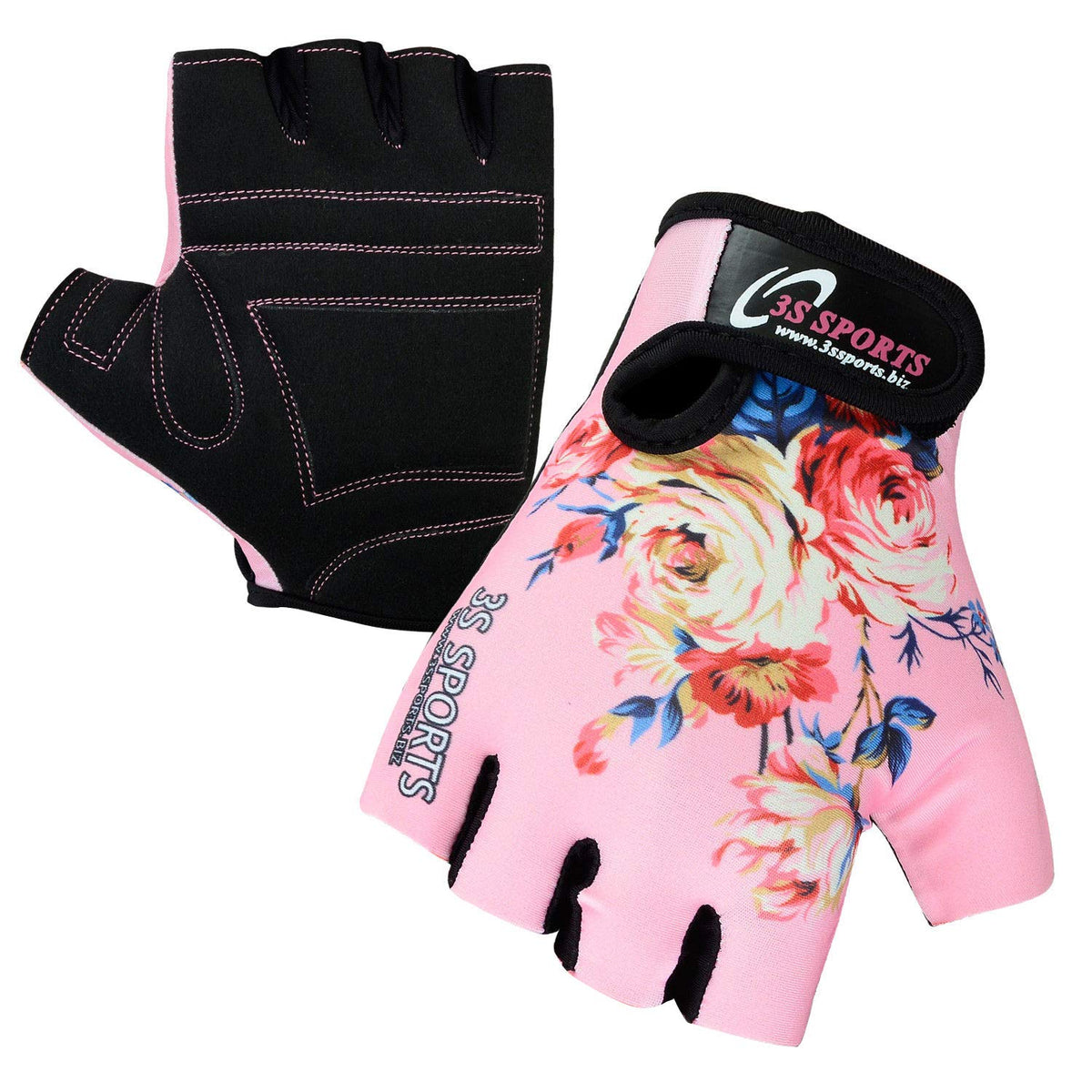 3S Sports CHILDREN KIDS BOYS GIRLS CYCLING PADDED GLOVES BMX BIKE CYCLE BICYCLE GLOVES PINK FLOWER