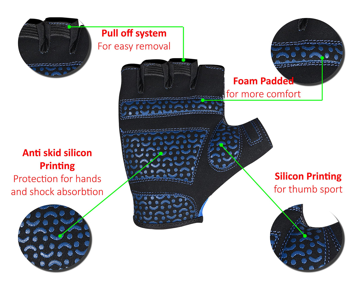 ๐งค โป Padded protective palm with silicone printing offers shock absorbing protection which can help to prevent blisters and also reduces the effect of road vibration, relieving hand fatigue. The gloves will also help protect palms from grazes and cuts after a fall, and allows for extra grip.