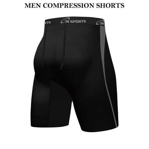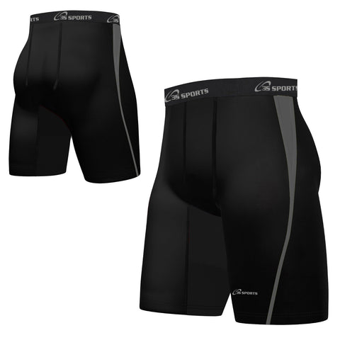 3S SPORTS Men's Compression Shorts Base Layer Brief Pant Thermal Running Gym Fitness Yoga Short - Black/Grey / S
