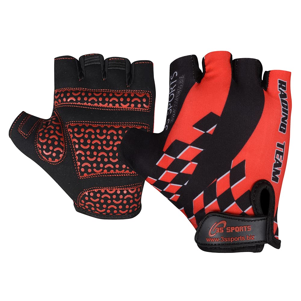 Attractive half finger / fingerless cycling gloves for children of all ages from 3S SPORTS, the gloves have straps on the fingers to allow easy removal for kids. These comfortable, stylish and practical gloves can be worn for all outdoor activities: in particular riding road cycling, bmx, mountain bike, balance bike, scooters for boys, scooters for girls, skateboards, roller skates.