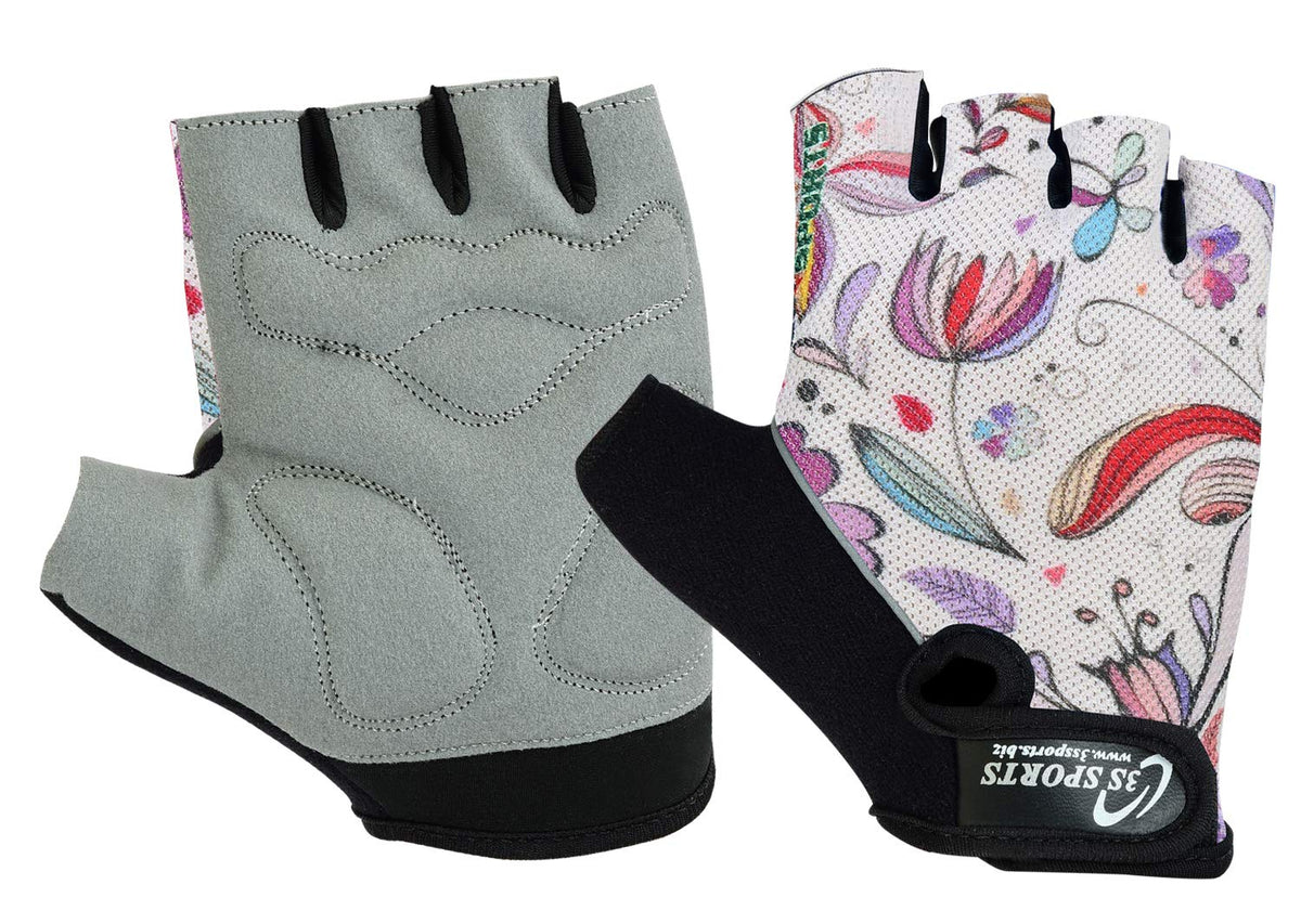 3S Sports Women's Cycling Gloves Bicycle Half Finger Gel Padded Anti-Slip Fingerless Sports Glove For Ladies - Flower / S
