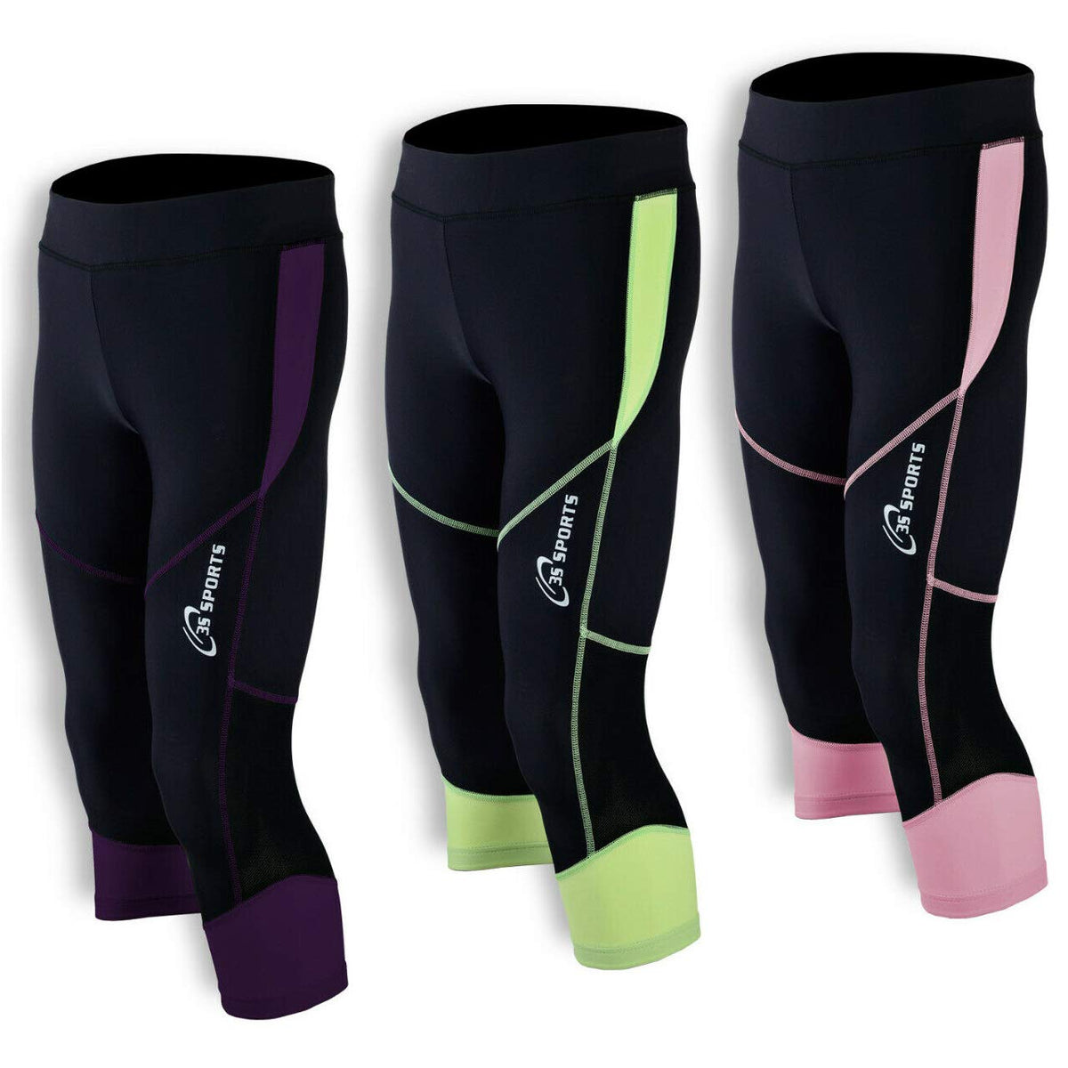 Ladies 3/4 Compression Tights Shorts Trousers Running Gym Exercise Leggings